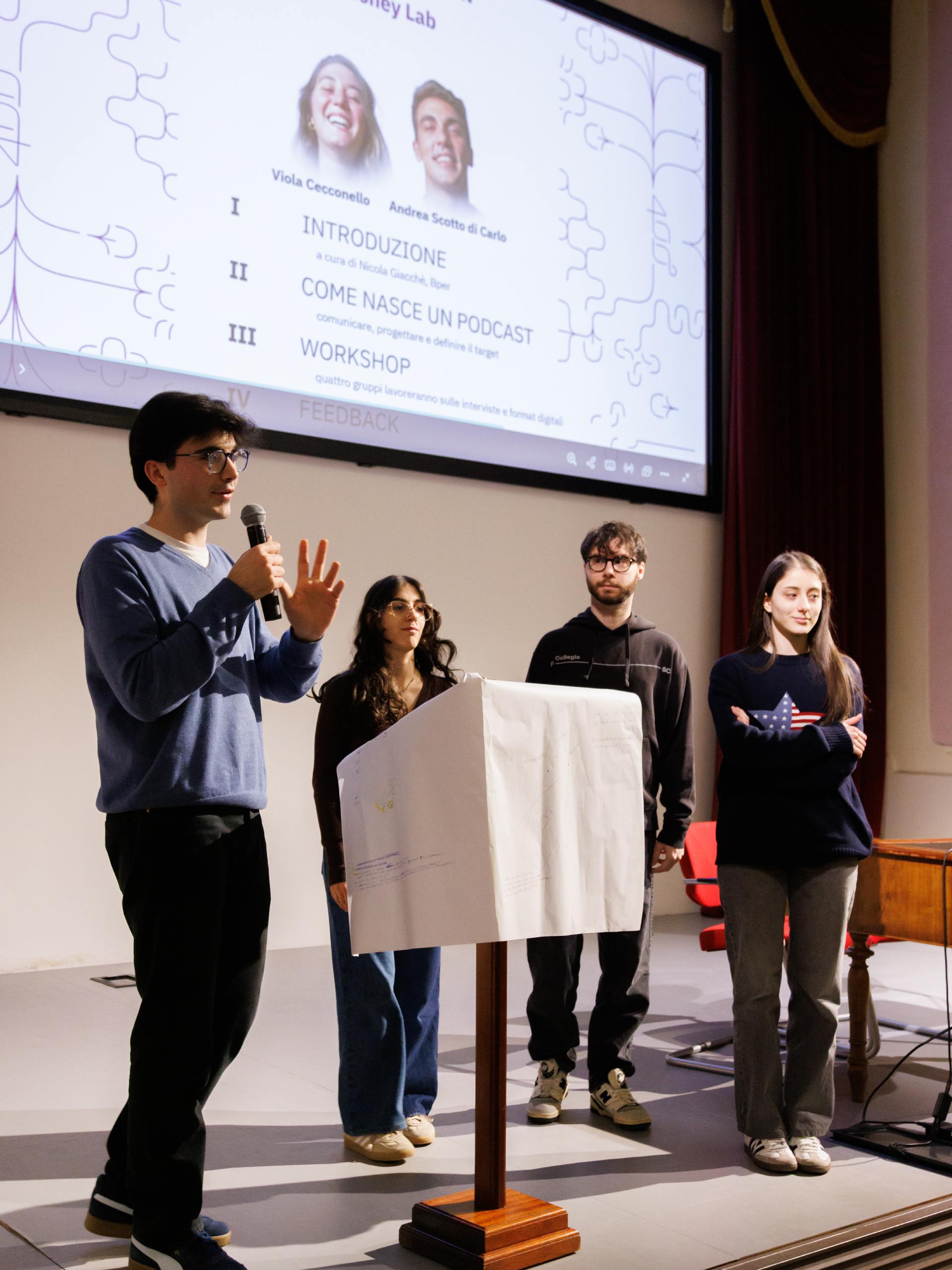 Il percorso, che conta quattro appuntamenti tra marzo e aprile 2026, prevede un ciclo di incontri, laboratori e podcast con la partecipazione attiva degli studenti del Collegio San Carlo. Attraverso momenti di confronto e attività interattive, gli studenti e le studentesse sono coinvolti in una riflessione sui diversi aspetti legati al rapporto con il denaro, tra informazione e competenze pratiche, dimensioni emotive e prospettive per il futuro.