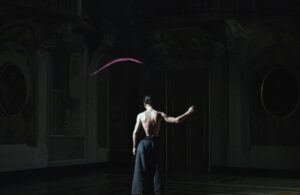 Ancora oggi nella Sala dei Cardinali i fili immaginari che connettono passato e presente si intersecano in una fitta rete di relazioni, tra affreschi e decorazioni barocche. In dialogo con la Sala, la performance “Memoria-Misura” ha esplorato, attraverso la figura di una singola danzatrice, uno spettro di possibili rapporti tra movimento, suono, danza e musica, toccando le corde dell’espressione umana.